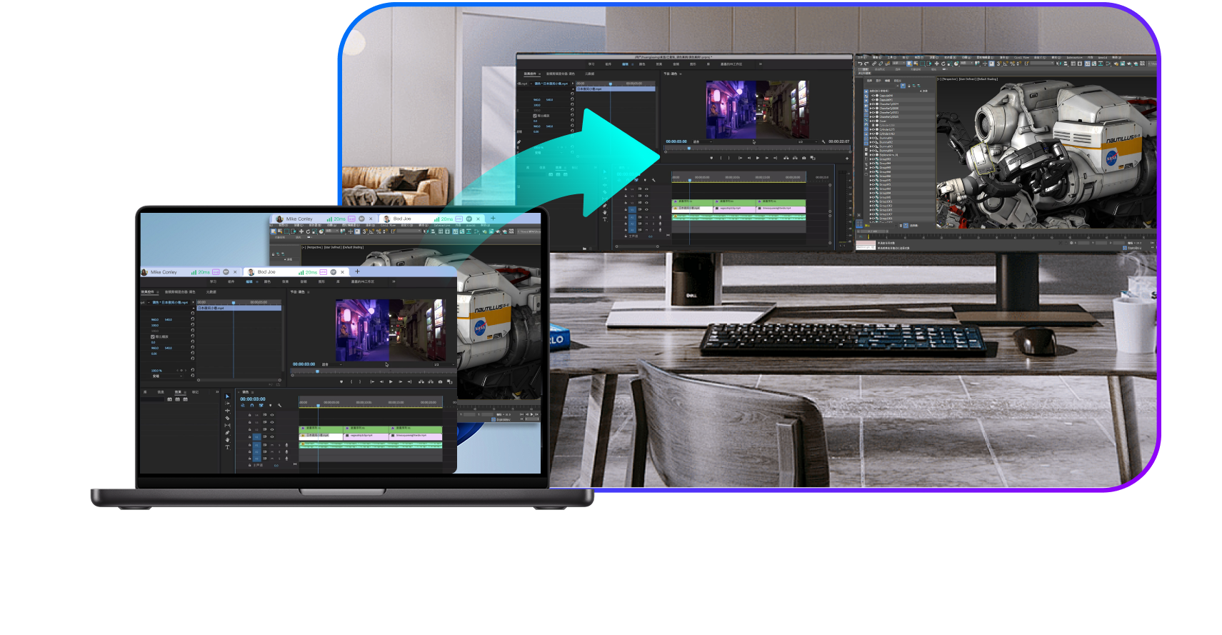 多场景 复杂通讯网络提速。 现已集成至远程桌面、云桌面、数字孪生